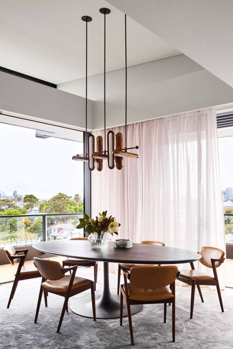 · Тюль, повторяющий рисунок гардин — интересное решение, создающее иллюзию градиента на окне.