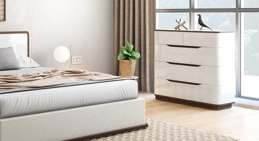 Вместительный комод для спальни позволит спрятать носки и нижнее белье, так как люди, у которых нет такого предмета мебели, обычно вынуждены хранить вещи в шкафах.