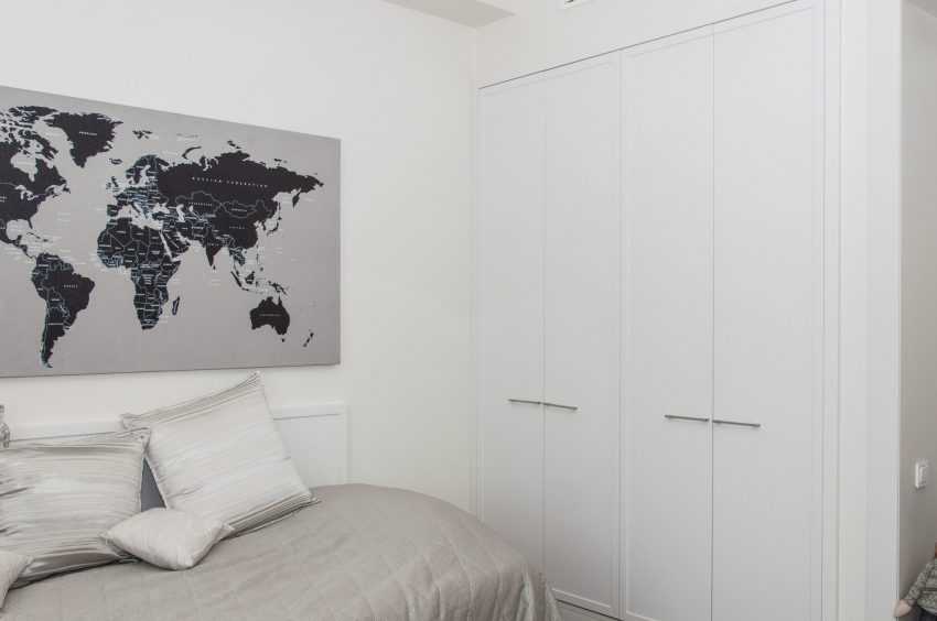 Для небольшого помещения идеальным вариантом может стать встроенный шкаф. Такая конструкция занимает намного меньше места за счет отсутствия задней стенки (а то и боковин шкафа) и необходимости отступов от стены из-за плинтусов.