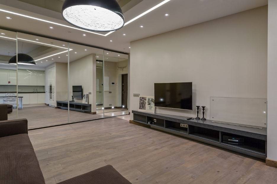 Размещение современных шкафов-купе в гостиной