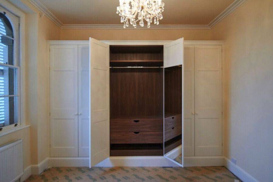 - обладает большей вместимостью. Шкаф-купе однозначно должен занимать всю нишу от пола до потолка, чтобы не было зазоров между верхним краем дверцей и потолком. За счёт этого пространство для хранения вещей увеличивается в сравнении с корпусными шкафами, которые никогда не устанавливаются максимально плотно к потолку. По этой же причине встраиваемый шкаф удобнее для уборки, так как пыль не скапливается в труднодоступном месте под потолком;
