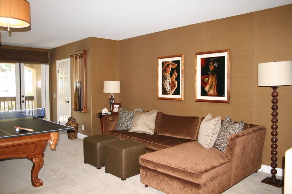 Если комната оформлена в пастельных тонах, подойдет диван коричневого оттенка.