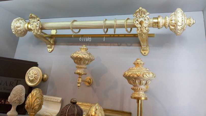 Производители выпускают различные виды штанг. Их поверхность может иметь гладкую поверхность, а может быть украшена различными витиеватыми узорами разнообразной формы. Очень часто концы штанговых карнизов оформлены наконечниками, которые имеют не только разнообразную форму, но и могут быть выполнены из самых разных материалов.