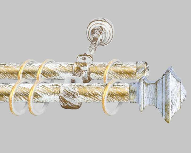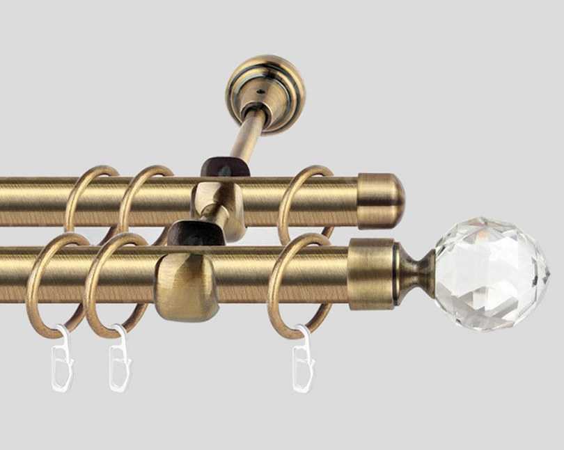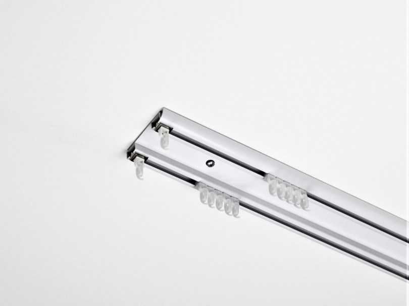 - Более распространённым вариантом является двухрядный вариант. Такая конструкция предназначена для вывешивания двух видов текстильных полотен, чаще всего используются плотные портьеры в сочетании с лёгкими гардинами.