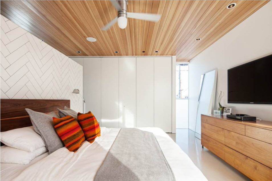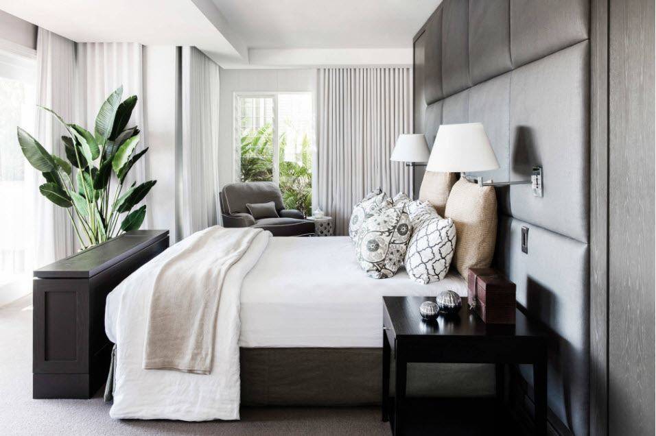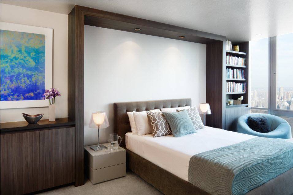 Интерьер обычной спальни может быть оформлен с использованием любого дизайна, но варианты для узкой комнаты обладают определенными ограничениями. Лучше всего в узком помещении смотрится скандинавский стиль. Он в большинстве случаев оформляется в светлых оттенках, а также является многофункциональным. Натуральные материалы и простые неперегруженные детали создают комфортную и расслабляющую атмосферу. Цветовые акценты расставляются при помощи светильников и текстиля, а также необычных текстур.