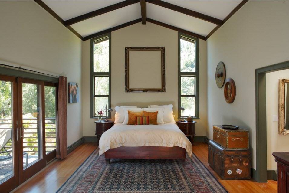 Хорошо будут смотреться в помещении и такие стили, как хай-тек и минимализм. Так как они не требуют избыточного количества декоративных элементов, а также применяют цвета, хорошо корректирующие неудачную конфигурацию пространства, смотреться спальня будет спокойно и свободно.