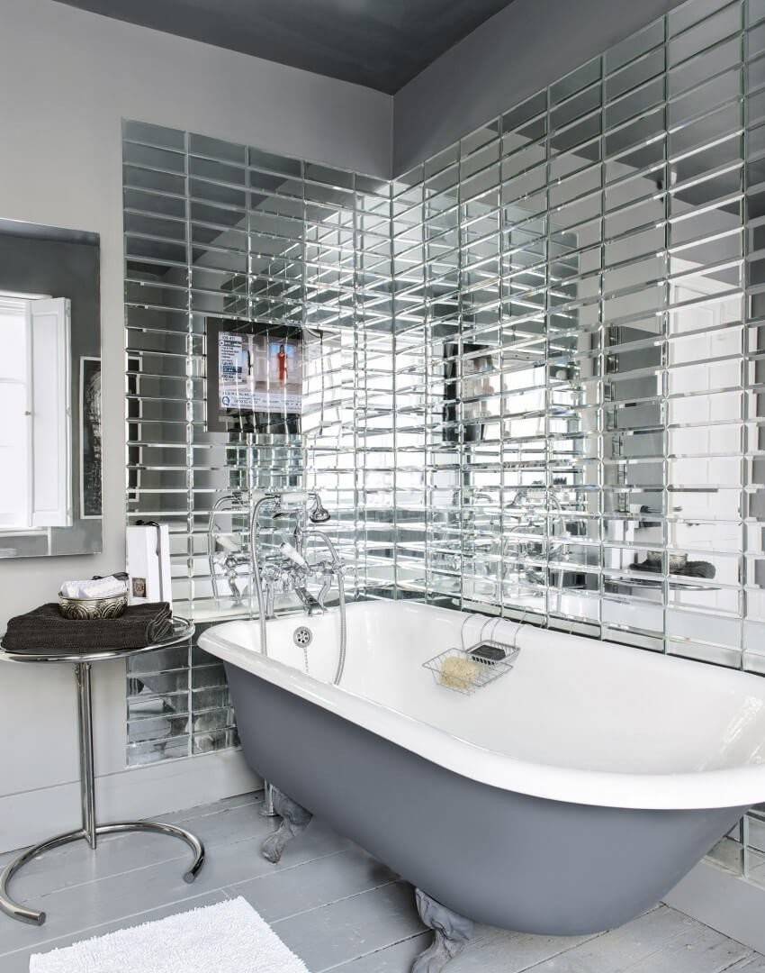 В оформлении стен узкой ванной комнаты следует придерживаться спокойной гаммы и плавных полутонов. Чем теснее помещение, тем мельче плитка понадобится для облицовки. Визуально «распахнуть» узкие стены поможет светлая глянцевая поверхность, горизонтальные бордюры, большие зеркала. Слишком длинную ванную можно зонировать, применяя разные варианты отделки — отличающиеся цвета, формы, материалы.