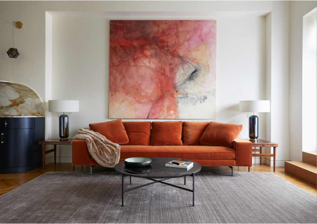 Сочетание серого с красным – достаточно смелое, эксцентричное и даже агрессивное. Это интересное решение для китчевых интерьеров, вроде поп-арта, где вся концепция строится на броских контрастах. А если хочешь слегка приглушить эффект, возьми более нейтральный коралловый или темный бордовый.