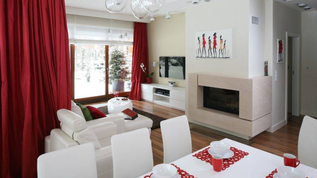 Холодные рекомендуются для больших помещений, теплые – для тесных. Обязательно должна быть центральная люстра, а также несколько декоративных или точечных светильников. Нелишней будет и подсветка. Если комната разграничена на зоны, освещение нужно продумать для каждой из них.