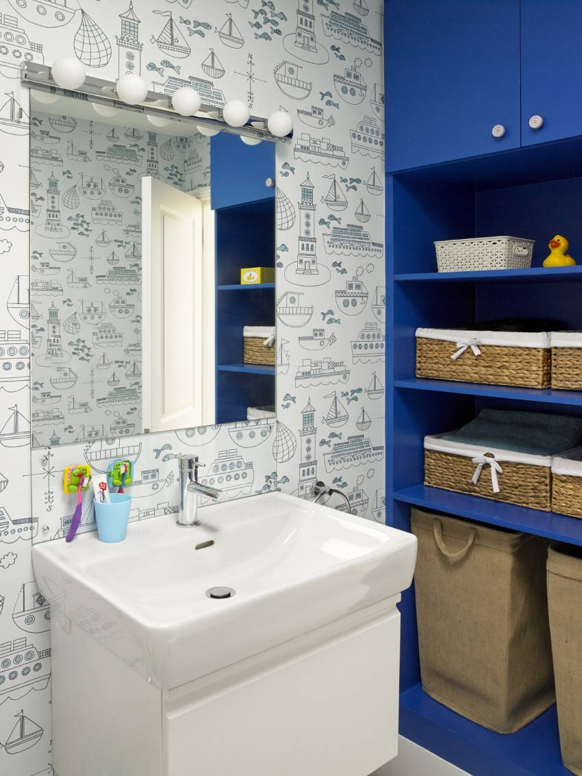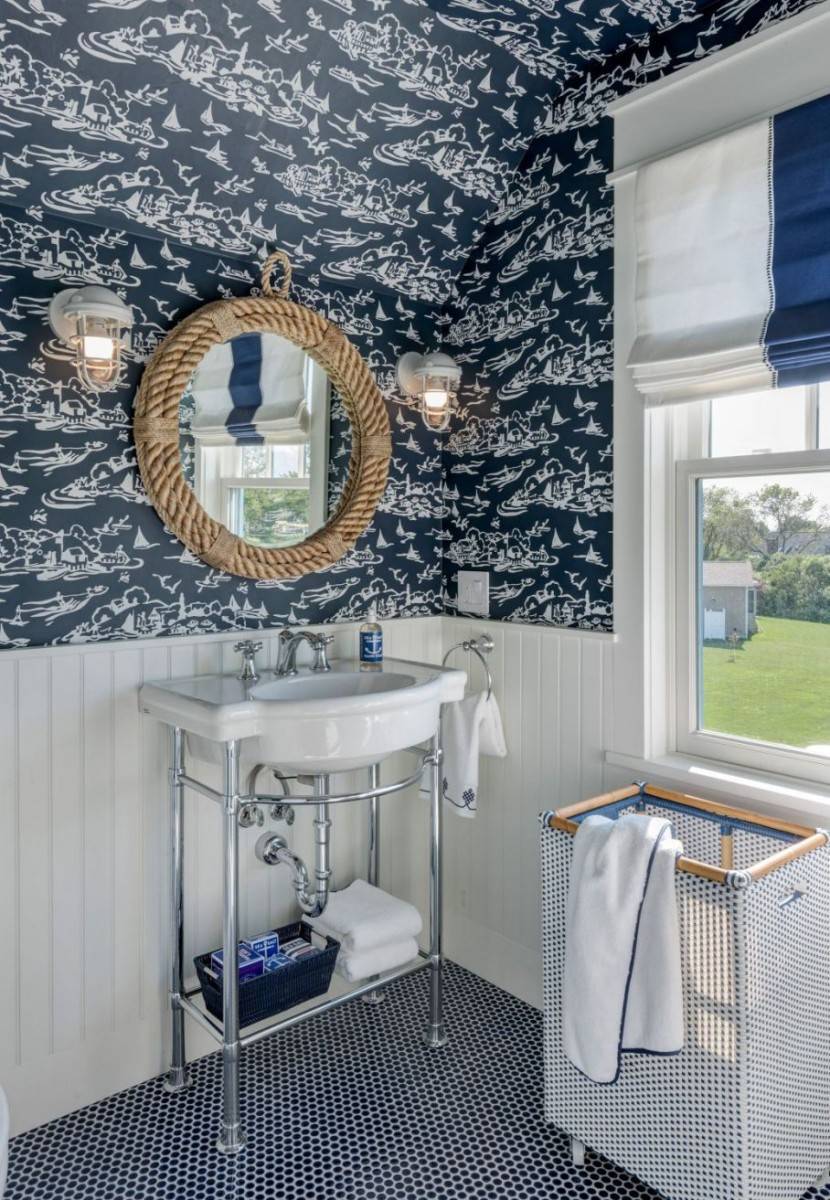 Отделка поверхностей для ванной комнаты в морском стиле ↑