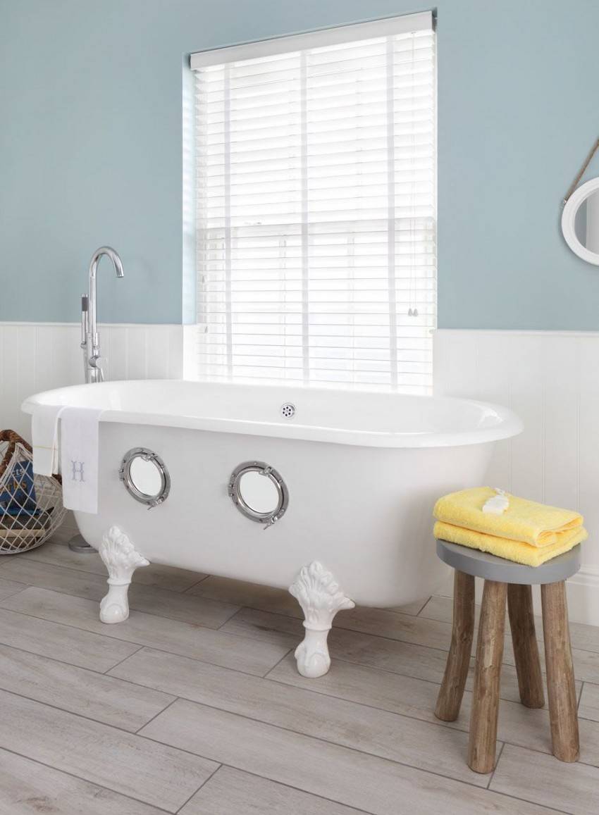 Если вас привлекает ванна в морском стиле, то отдайте предпочтение природным краскам моря, солнца и песка