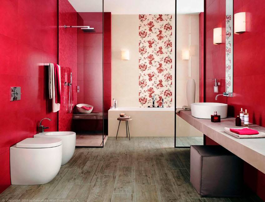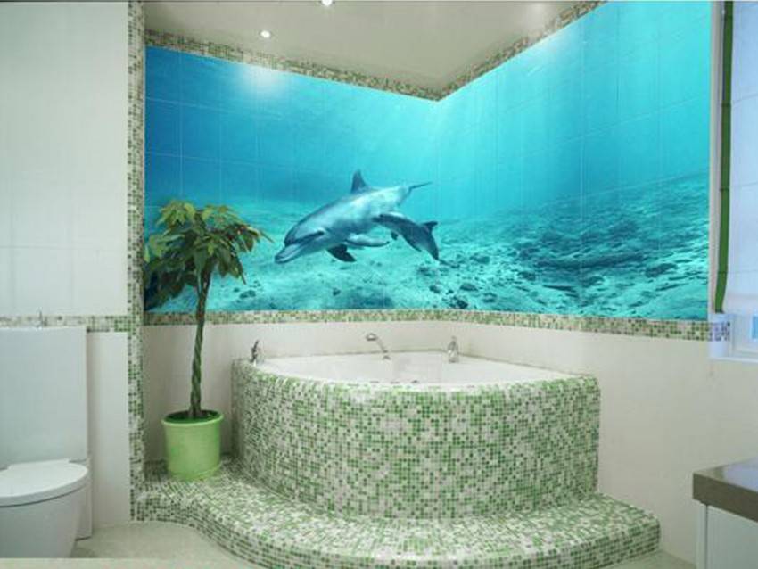 Отделать ванну плиткой, да к тому же однотонной? Считайте, что это вчерашний век. Если все-таки останавливаться на керамической плитке, то пусть это будут интересные принты или 3-D эффект.