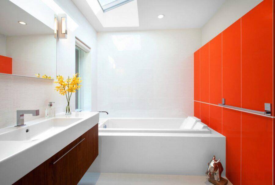 Чтобы помещение не казалось стерильным важно разбавить белый цвет яркими акцентами