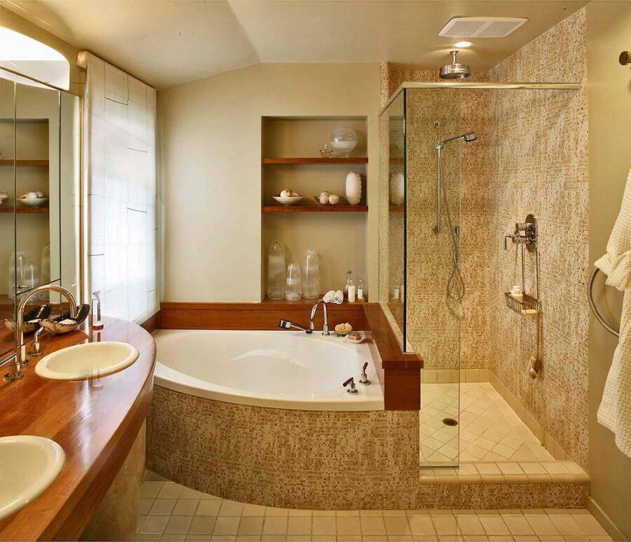 Если позволяет пространство, то многие сочетают в проекте расположение душевой кабины и ванны.