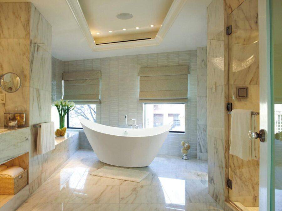 Дорогой и изысканный вариант — использование для отделки ванны натуральный камень: мрамор, сланец, оникс. Он будет требовать более тщательного ухода, хотя современные пропитки не позволяют влаге проникать внутрь такого материала.