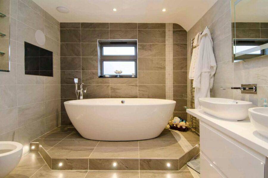 - большому помещению – солидное освещение, а значит, что чем больше ванная комната, тем более композиционно сложной и взвешенной должна быть система освещения (несколько уровней);