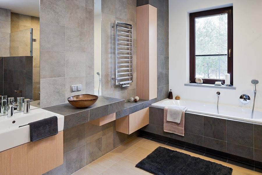 Современная ванная комната с ванной станет представительным помещением. Благодаря большому размеру вы можете позволить себе установить вместительную чашу для купания. Однако наиболее часто выбираемые решения включают угловые или асимметричные ванны, прилегающие к стенам комнаты, которые не только считаются немного более дешевыми, но и позволяют оптимально использовать пространство