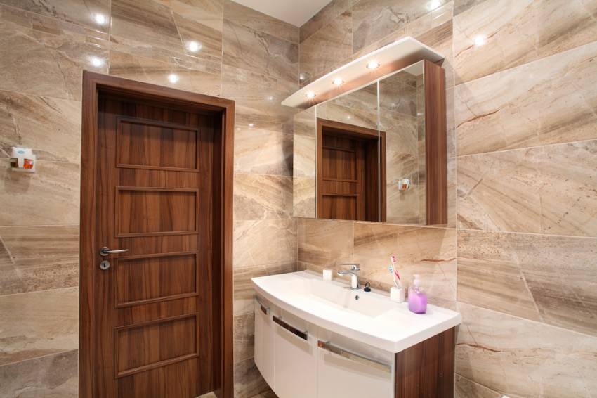 Самый лучший способ создать эксклюзивный интерьер ванной комнаты – использовать для оформления помещения дорогую мраморную отделку: плитку или панели. Помещение в классическом стиле будет прекрасно смотреться в белом мраморе, а для интерьера в стиле минимализм или хай-тек подойдет отделка в песочных или кофейных тонах.