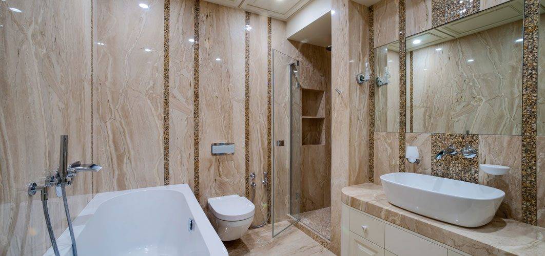 Мраморные стены в ванной