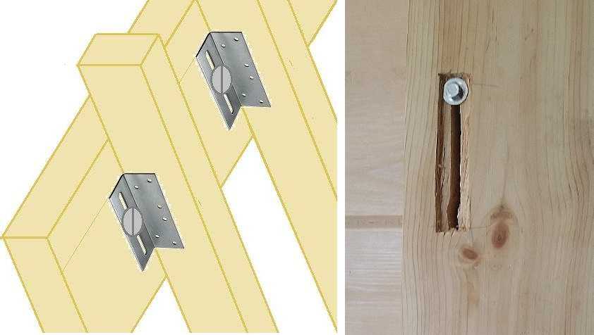Второй способ сделать плавающую обрешетку в деревянном доме — в бруске при помощи ручного фрезера сделать несколько сквозных пропилов длиной около 10 см. Через этот пропил фиксировать брус к стене при помощи все того же глухаря с шайбой. Чтобы головка болта не торчала, фрезером сделать углубление. Глубина его равна (или чуть больше) высоте шляпки болта, а ширина — по размеру шайбы (на фото справа). Для недавно построенного дома крепеж устанавливают в верхней четверти пропила, для устоявшегося дома — примерно посередине.