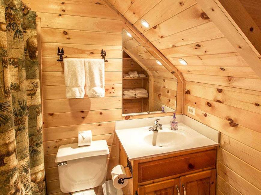 Уютная ванная в деревянном доме