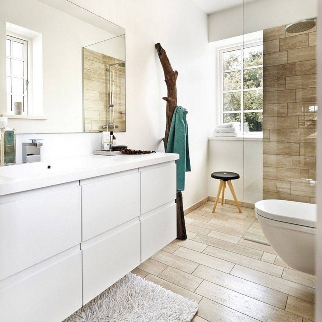 Если вы все еще обеспокоены тем, что ваша комната кажется слишком стерильной, добавьте немного контраста, используя бледно-серую напольную плитку.