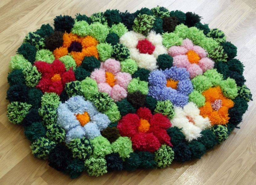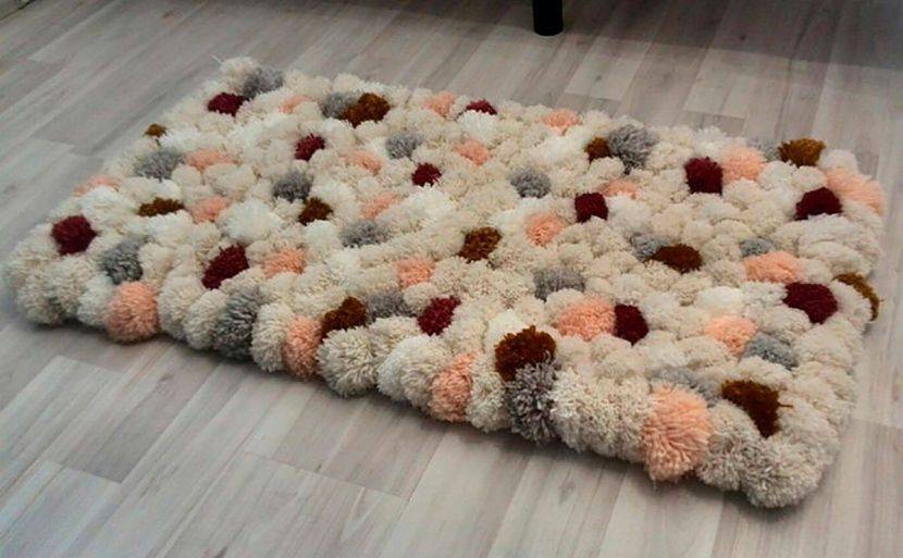 С таким изделием сможет справиться любой школьник. А времени уйдет минимальное количество. Главное желание, фантазия и немного времени. Помпоны можно делать цветные, большие и маленькие. Такой коврик будет красиво смотреться в гостиной, спальне или детской комнате. Он приятен на ощупь и подходит под любой интерьер.