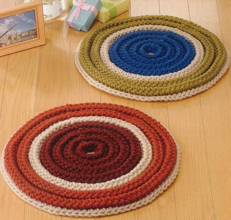 Хотя японские коврики с их неповторимым узором и выглядят сложными, но техника их выполнения проста: вяжутся полые колечки, которые потом соединяются между собой. Самый лёгкая модель состоит из четырёх колец, заполненных полотном из столбиков с накидами. Другой вариант японского коврика: делаем вязаное кольцо, к нему пришивается цепочка из полых колец, соединенных стандартным переплетением. Японский коврик добавит в интерьер этнических мотивов. Конфигурацию ковра можно менять.