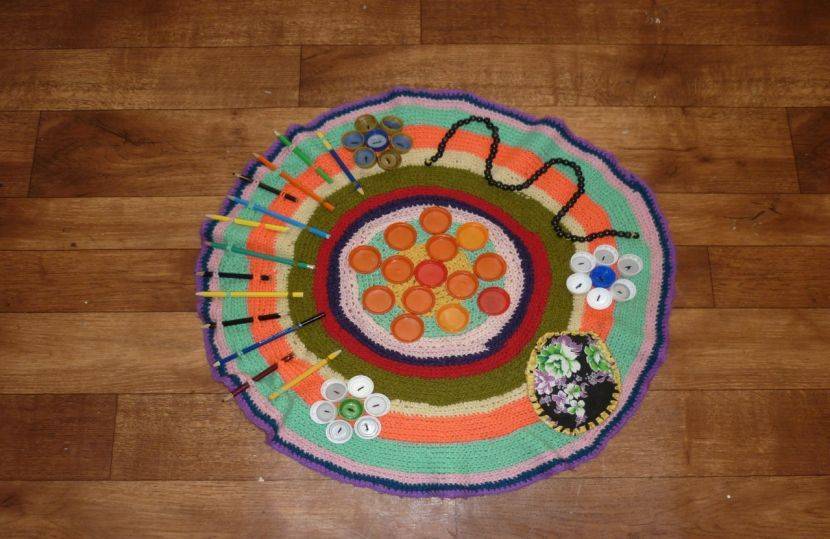 Глядя на этот коврик, сразу и не поймешь, как же он выполняется. Однако, все очень просто и, самое главное, увлекательно.