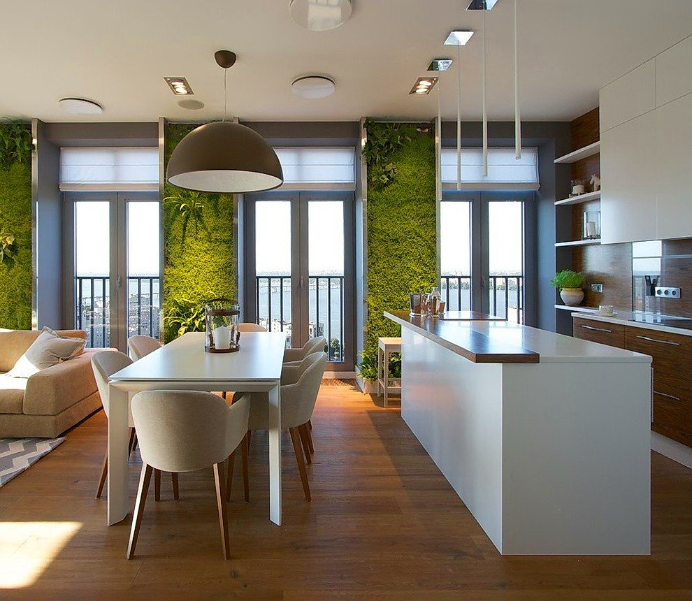 - несет эффект зонирования (с помощью вертикального сада можно разделить одну просторную комнату на две. Актуально для квартиры-студии или кухни-гостиной);