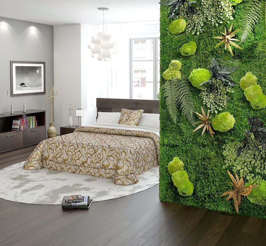 Зеленая стена в доме в качестве перегородки для зонированияИсточник pinterest.ru