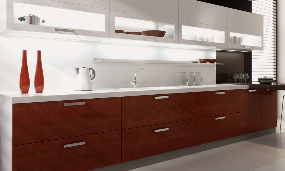 - Пластиковые и ЛДСП фасады долговечны и более устойчивы к царапинам, они легко отчищаются любыми слабощелочными мягкими средствами без спирта, хлора и абразивов, обрабатываются спец полиролями для придания блеска.