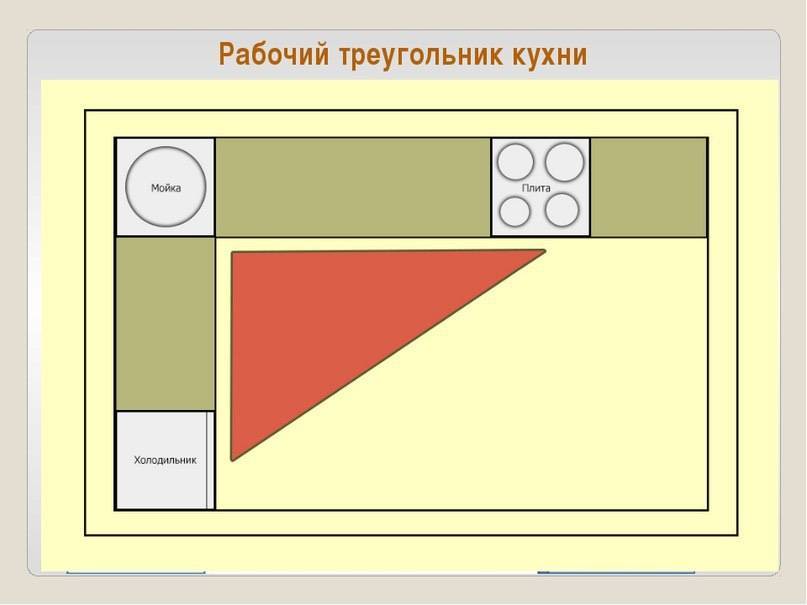 Максимальное удобство на кухне создает расположение этих точек именно в форме треугольника