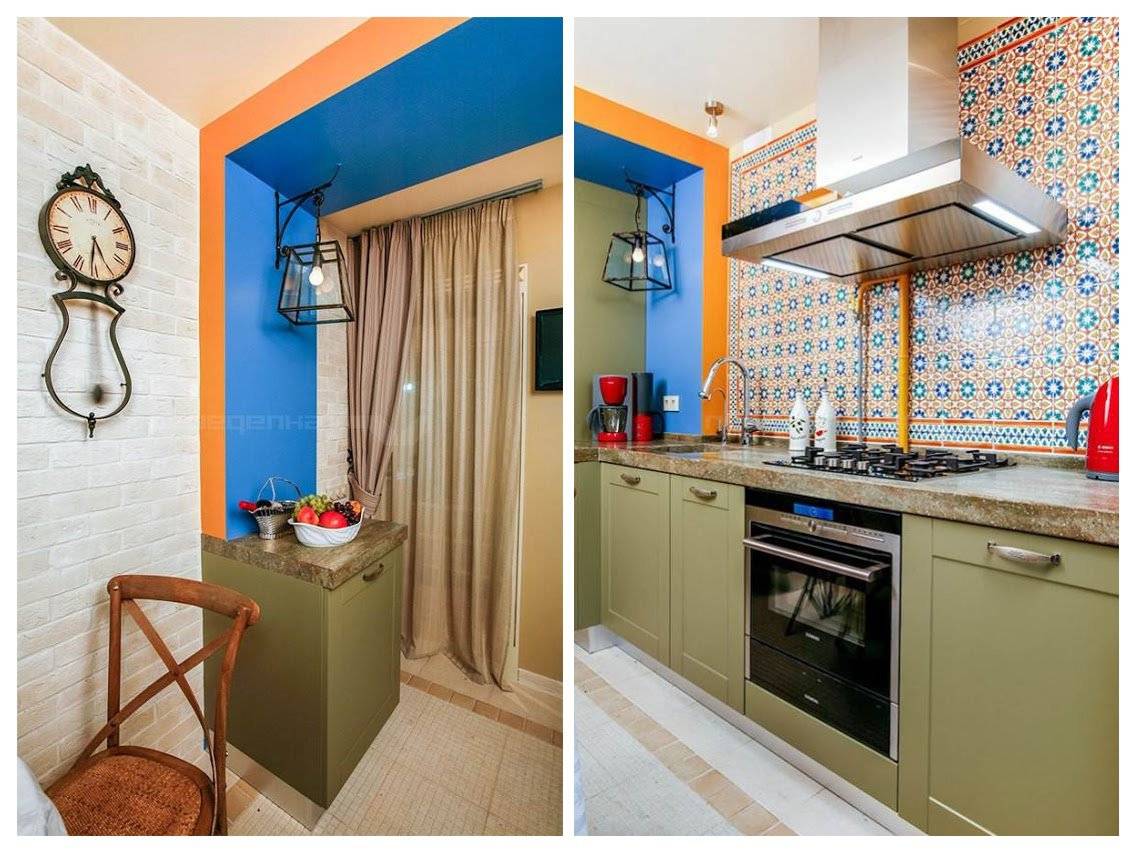 В кухне должно быть как можно больше светлых оттенков в сочетании с яркими или темными акцентами. Самые лучшие цвета для маленького кухонного гарнитура считаются: белый, бежевый, ваниль, светлое дерево, светло голубой.