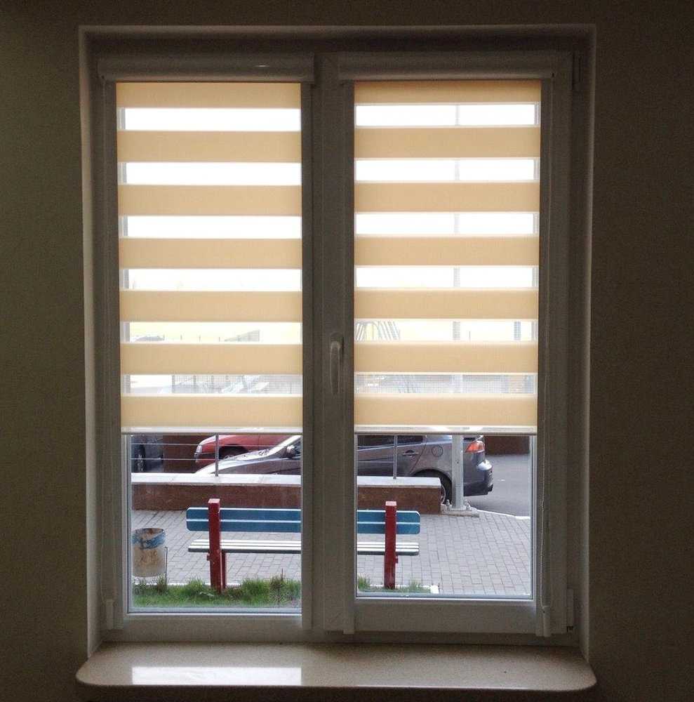 В этом варианте можно устанавливать и шторы день-ночь на пластиковые окна. По другому эти шторы называют зеброй из-за чередующихся прозрачных и плотных полосок ткани. Поднимая их особым образом с помощью шнурков, можно регулировать освещение в комнате.