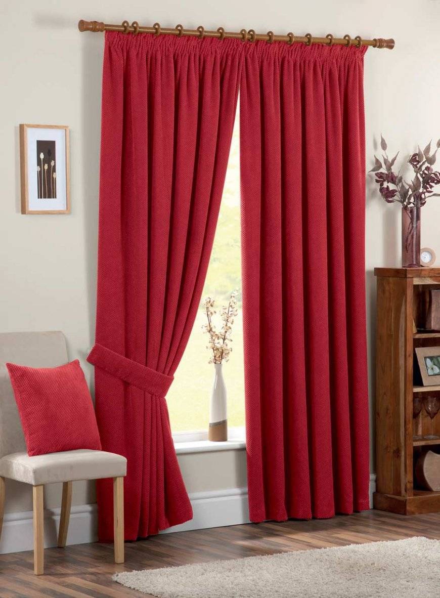 К примеру, ярко-красные элементы декора в виде диванных подушек или накидки можно продублировать идентичным тоном кротких занавесок. Такой ход придаст помещению уникальности, а интерьеру – изысканности и уюта.
