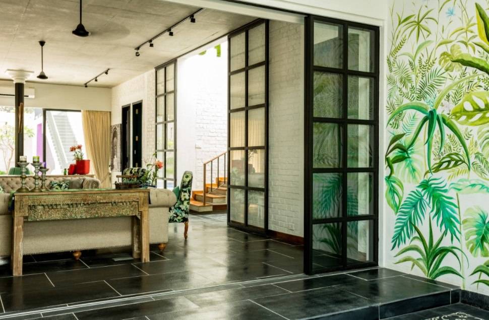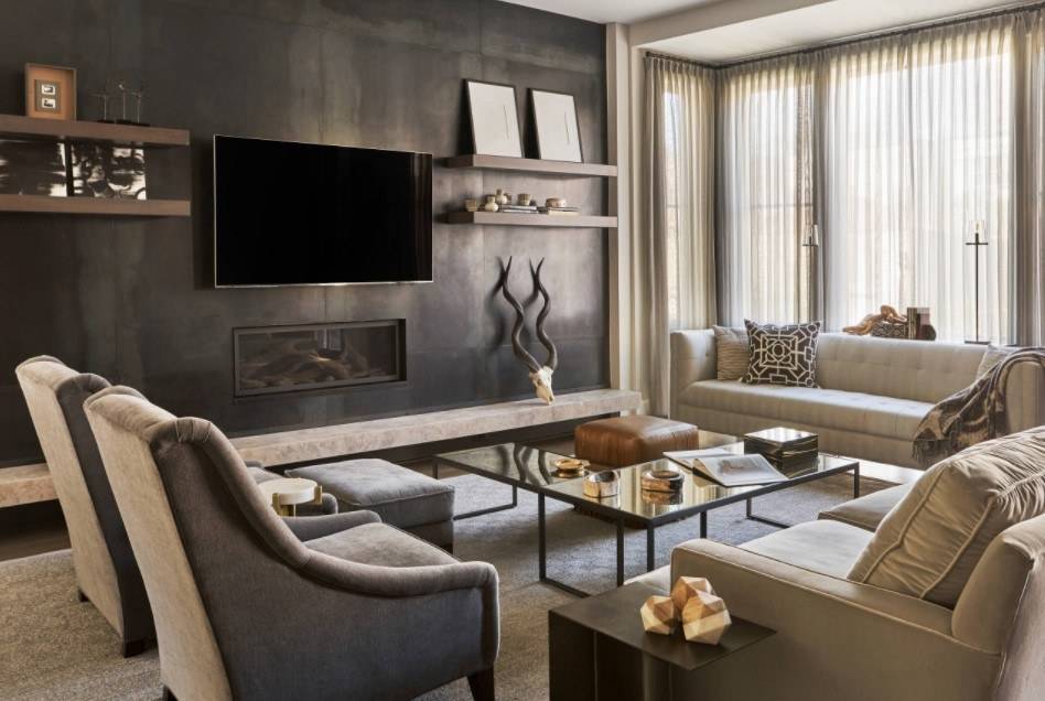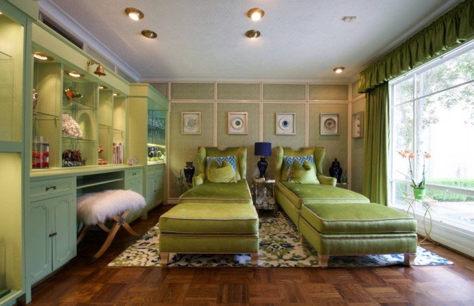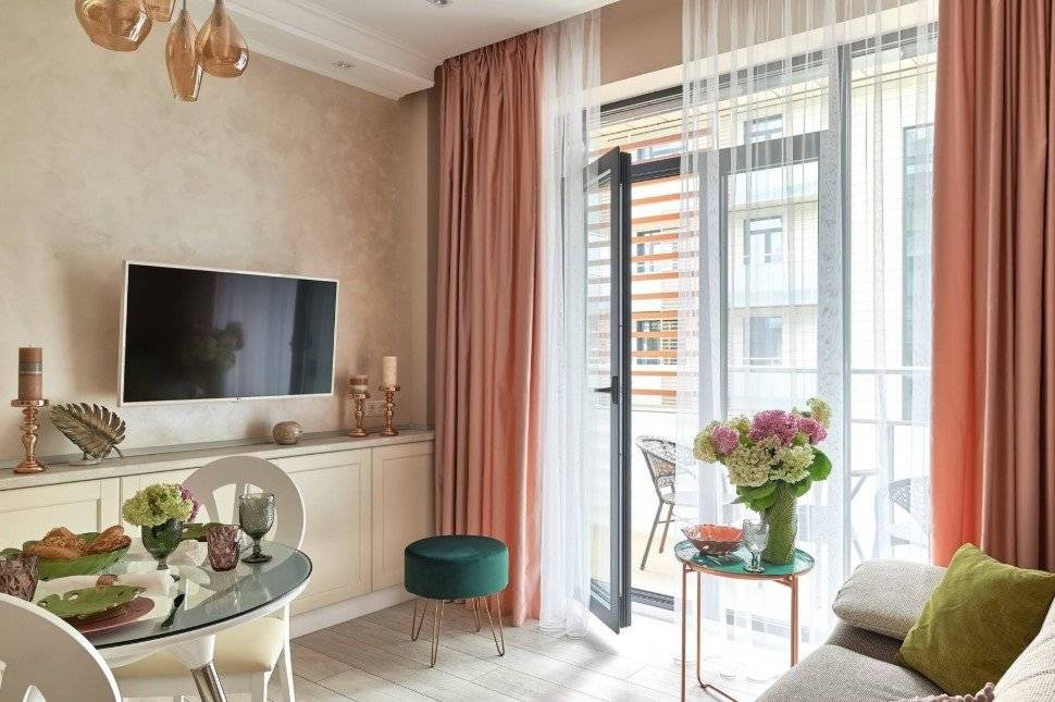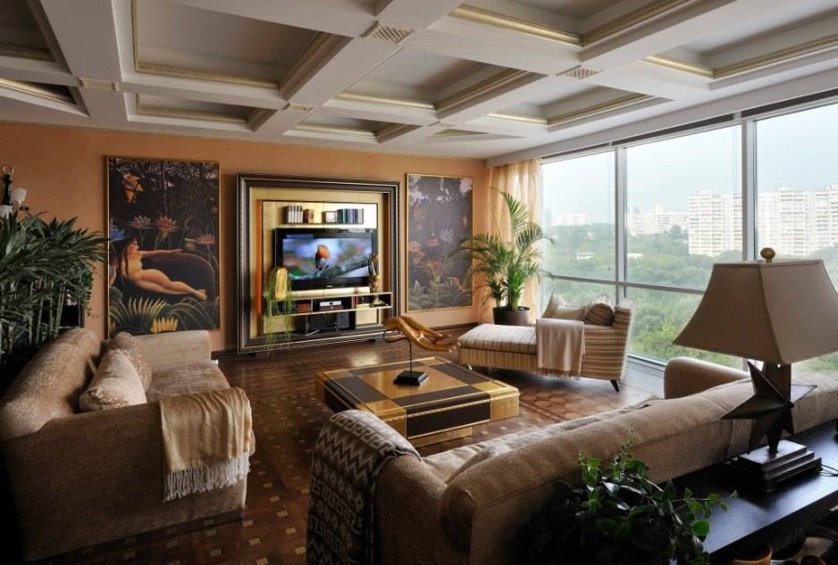 Нередко встречаются проходные комнаты, оформить которые по всем правилам не удастся физически — как минимум, будут мешать дополнительные двери. Именно их расположение обязательно учитывать в дизайне гостиной. Например, 2 выхода напротив друг друга в центре гостиной буквально делят ее пополам. Выходы по диагонали в плане также учитываются: расположение мебели будет диагональным.