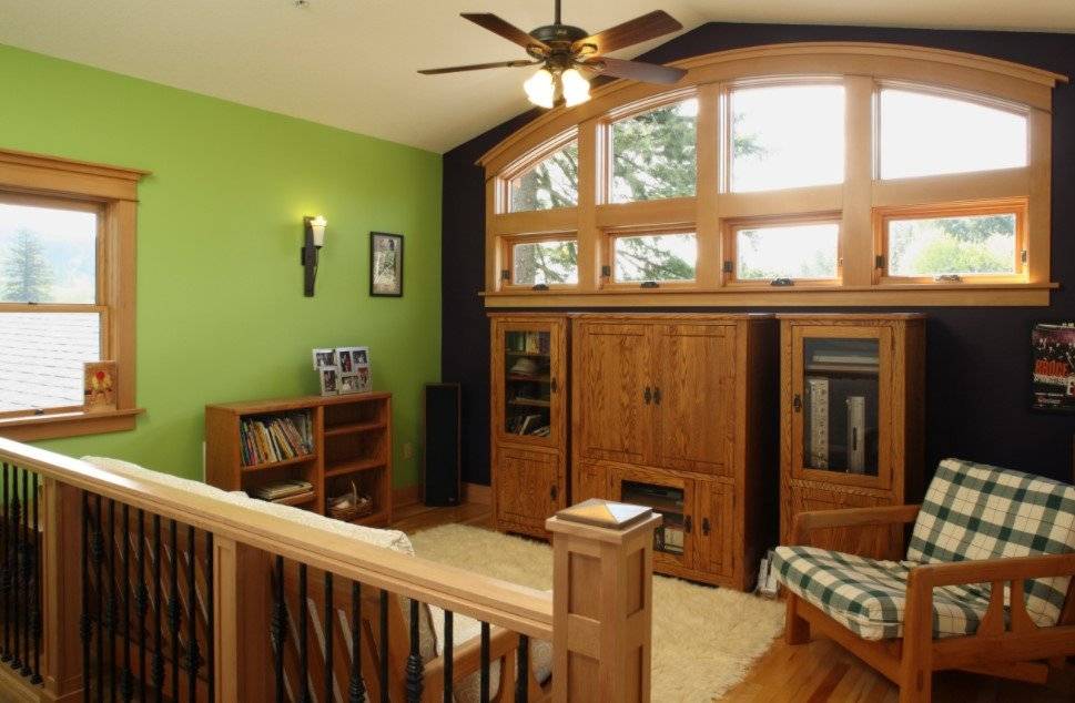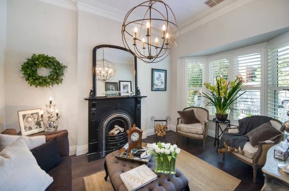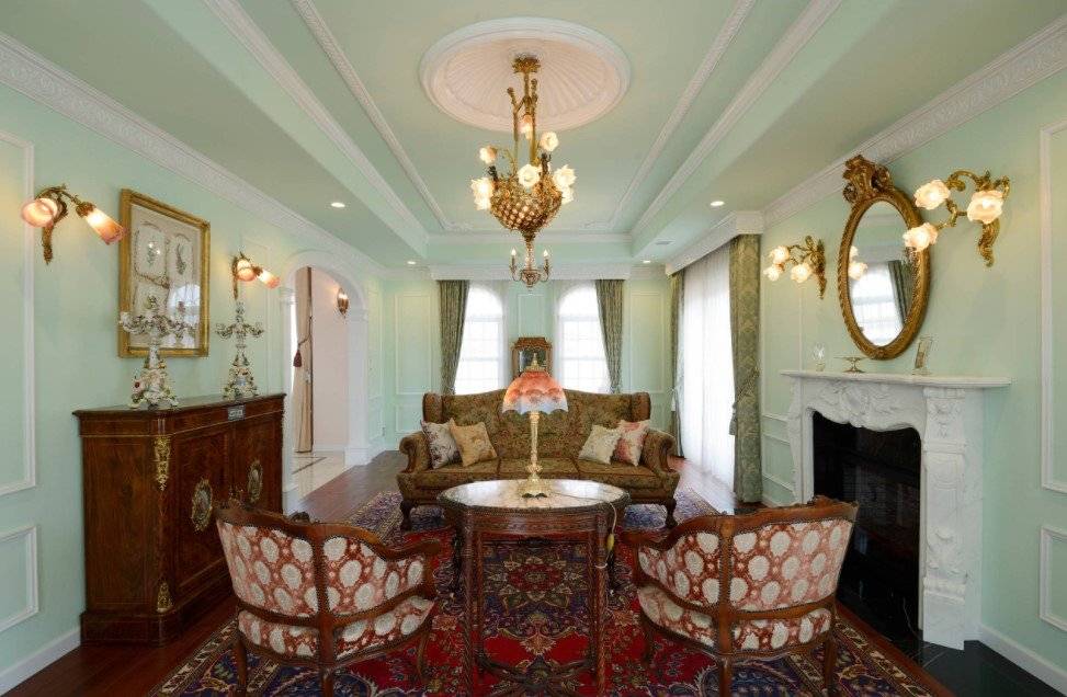 - 5-6-угольные. Квадраты или прямоугольники со скошенными углами с одной стороны, перенимают все плюсы/минусы основной фигуры. Но с другой, требуют особого внимания в месте дополнительного угла. С особенностью проще смириться, чем бороться: «пятый угол» подчеркиваем при помощи камина, кресла, картин, декоративных постеров или фото в рамах.