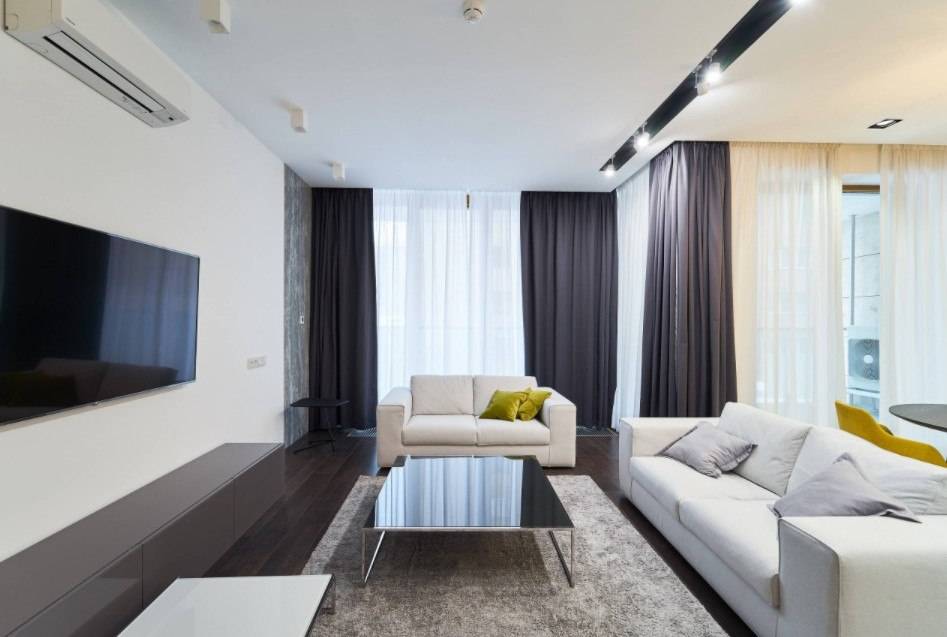 С другой — сложнее вместить в нем все необходимое, особенно если кроме дивана, стола, телевизора планируется разместить обеденную, спальную, рабочую зону. Чтобы зал получился комфортным, план должен быть изначально тщательно продуман: импровизация в данном случае неуместна.