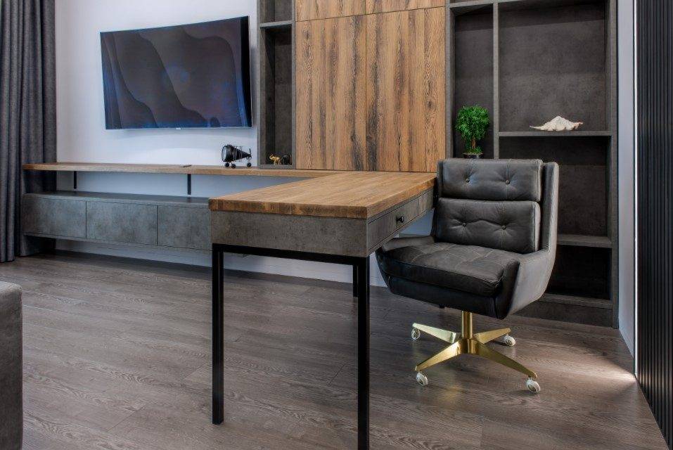 - Г-образные. С одной стороны, буква Г — не самый удобный вариант планировки гостиной комнаты. С другой — готовое решение по разделению зала на зоны. В одной части оформляют пространство для отдыха, в другой — спальню, столовую, кабинет или что угодно.