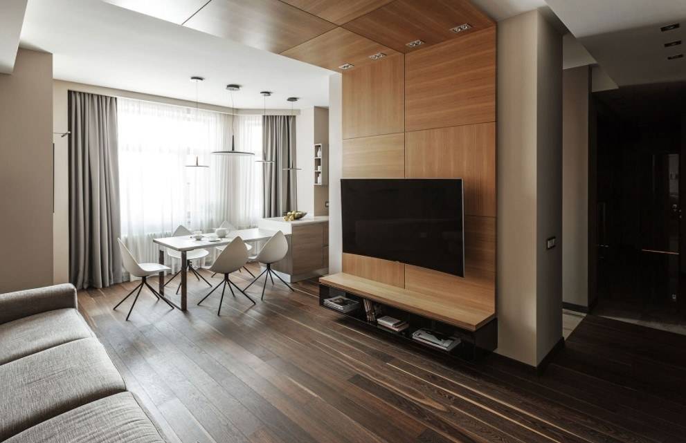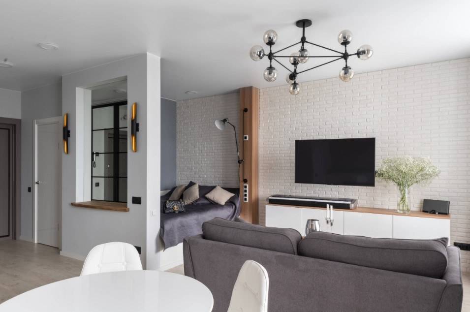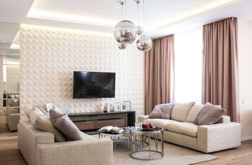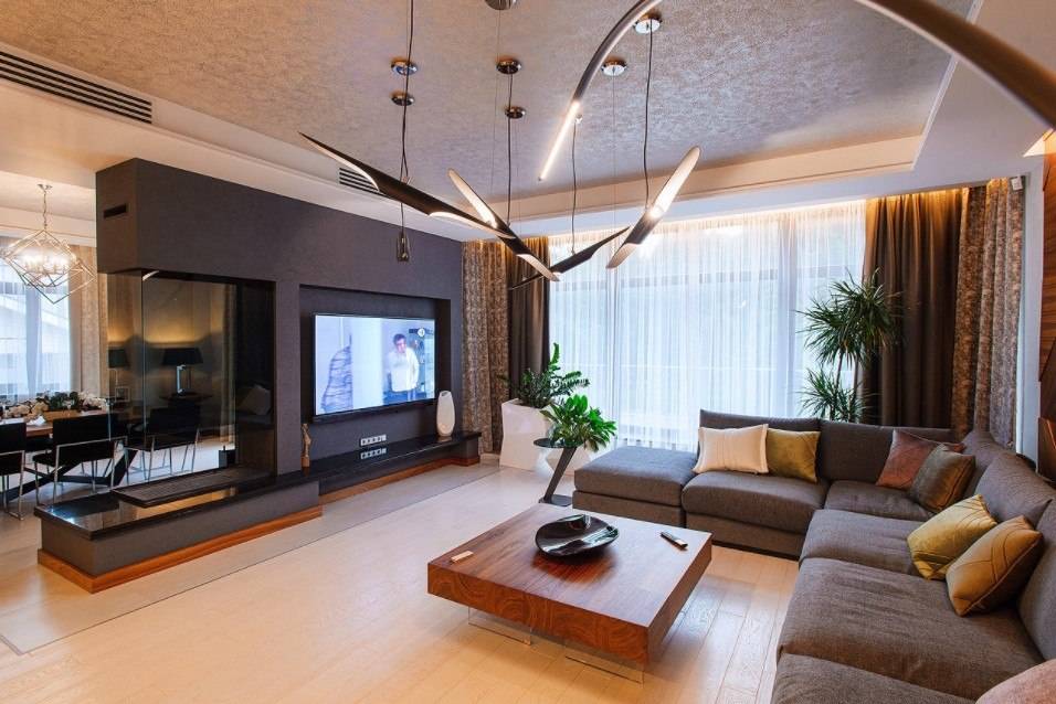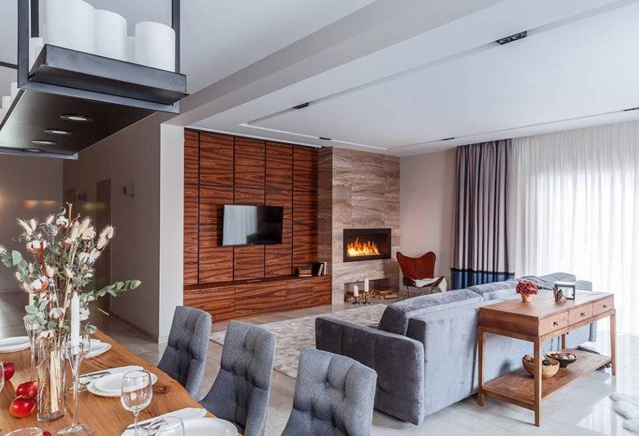Средние значения просторной гостиной начинаются от 20 м2: достаточно, чтобы разделить пространство на функциональные зоны, вместить всю необходимую мебель, оставить место для свободного перемещения.
