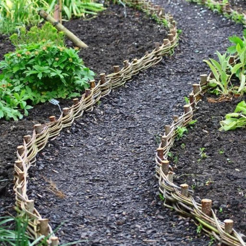 Чем ближе к ограде, тем более высокорослые виды используются. Декоративные бордюры делают из кирпича, камня, щебня.