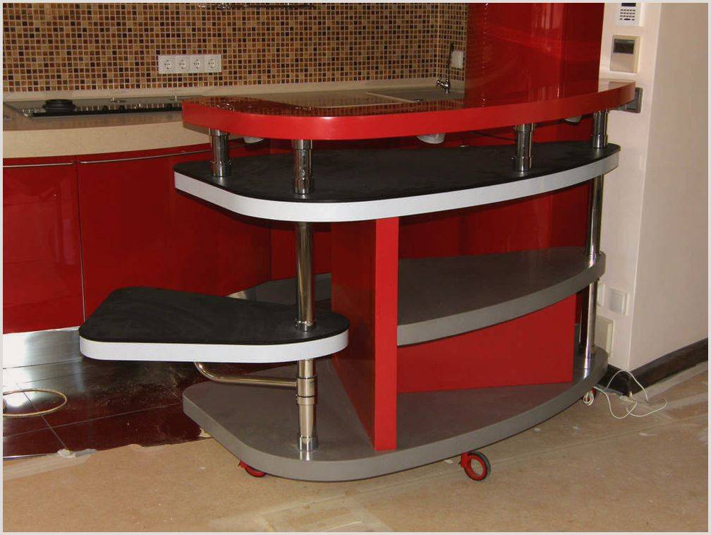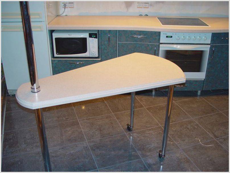 Это идеальное решение для маленьких помещений. Как правило, такая конструкция монтируется на высоких опорах. Одна сторона крепится к стене, другую держит подножка. Самая комфортная высота такой столешницы — 0,9 метров. Она может служить как рабочей поверхностью для готовки пищи, так и обеденным столом. Высота барного стула при этом должна быть не более 60 сантиметров. Мини-стойка призвана увеличить рабочую площадь столешницы на кухне и является очень практичным вариантом.