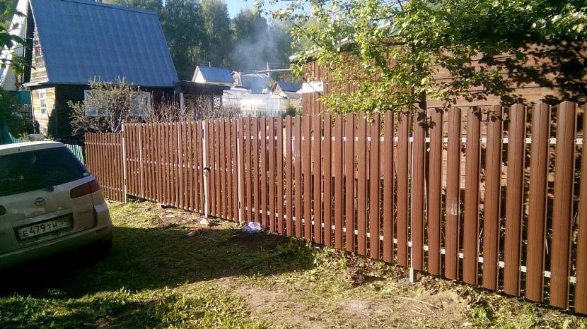Раз установив такой забор, можно о нем по-хорошему забыть – никакого ухода он не требует. Он солиден, прочен, и он дает широкий простор для оформительских идей благодаря разнообразию расцветок, профилей и способов крепления.
