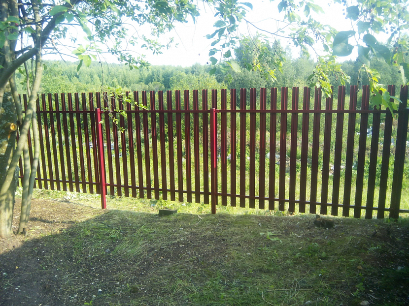 Конечно, есть у этого материала определенные недостатки. Поскольку каждая штакетина крепится отдельно, монтаж занимает больше времени и требует большего количества замеров, чем при установке профнастила. Крепежного материала тоже уходит немало. Однако этот фактор уравновешивается тем, что можно приобрести штакетник, изготовленный в виде секций.