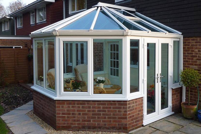 Здесь используются пластиковые окна со стеклопакетами. Они отличаются низкой теплопроводностью и имеют симпатичный внешний вид. Плюсом тёплого остекления также будет то, что оно даёт максимальную теплоизоляцию. При правильном монтаже, выполненном профессионалами, такая беседка способна прослужить достаточно долго.