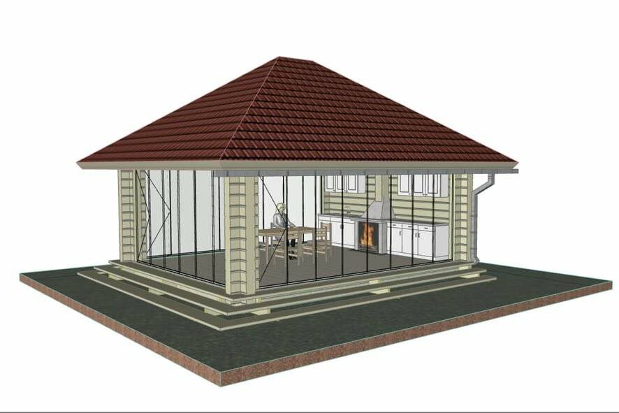 По сравнению с открытыми беседками, закрытый тип основательней. Поэтому нужно внимательно отнестись ко многим мелочам, например к фундаменту и коммуникациям.