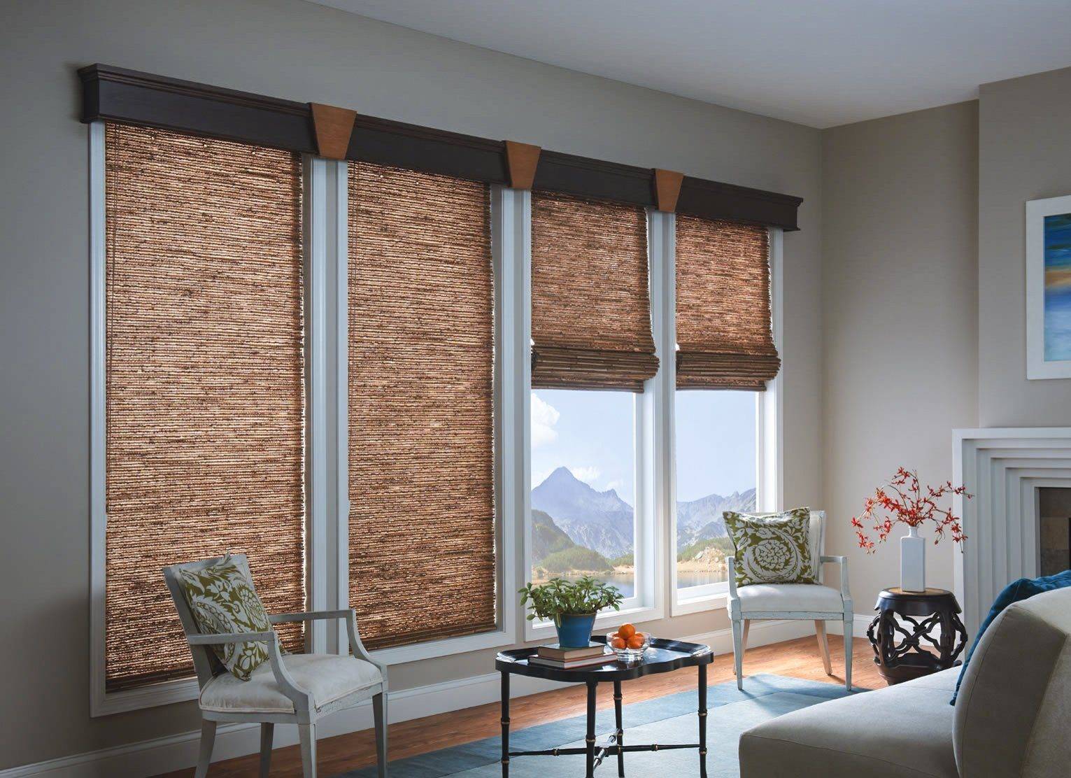 - Эко-стиль, скандинавский – больше натурального, природного. Как альтернатива допускается использование деревянных, бамбуковых моделей жалюзи или их имитации.