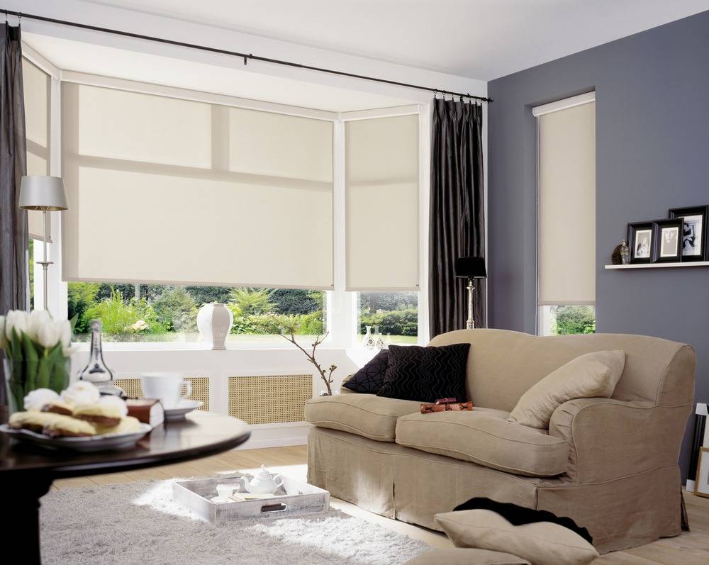 Рулонные жалюзи в гостиной бежевого цвета Источник interiorno.ru