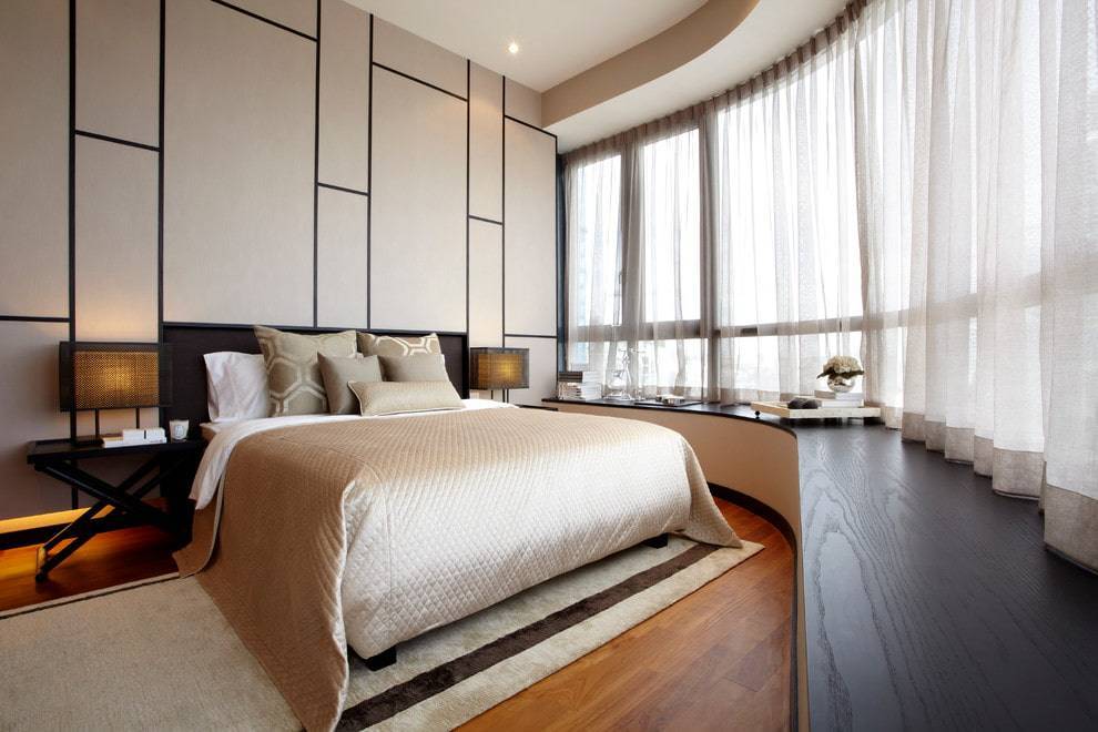 Шторы из лёгкой натуральной ткани характерны для минималистического стиля
